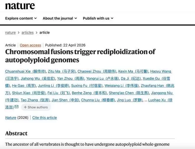最近,《自然》期刊在线发布了一项重磅研究,标题是《染色体融合驱动同源多倍体基因组再二倍化》。这项成果的分量可不轻——它是近年来我国淡水鱼演化研究领域在《自然》杂志上发表的首篇论文,标志着我们在演化基因组学与鱼类学研究上取得了实质性突破。值得一提的是,论文的全部共同第一作者和共同通讯作者,都来自西南大学。