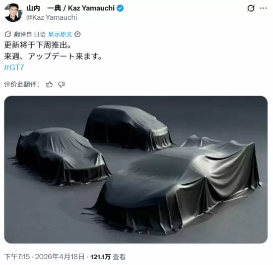就在4月18日,知名赛车游戏《GT7》的制作人山内一典,通过官方社交平台投下了一枚“重磅冲击波”。他正式宣布,游戏将于下周迎来一次版本更新,并随文附上了一张引人遐想的预告图——三辆被车衣严密覆盖的新车剪影。