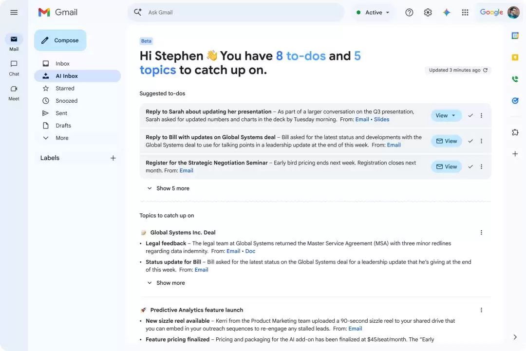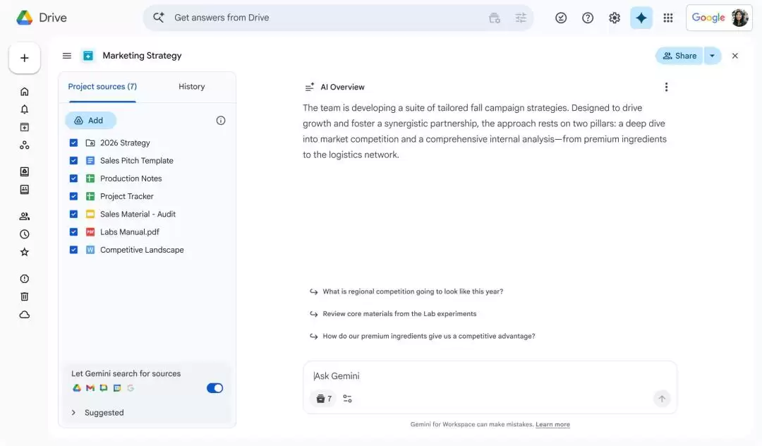 此外,Gmail迎来了“AI收件箱”,可自动提炼邮件重点;“Drive Projects”则让团队知识库流动起来,彻底终结了“寻找文件”的噩梦。