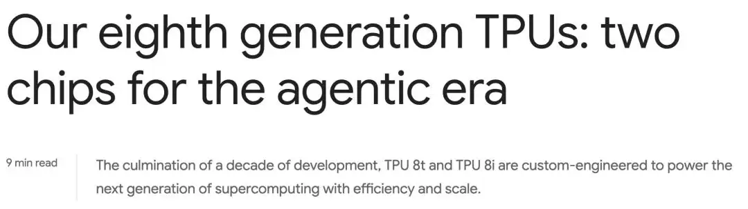面向智能体时代,谷歌祭出了“两款芯片”的答案:专攻训练的TPU 8t与专攻推理的TPU 8i。这标志着谷歌TPU战略的一次关键分化,十年磨一剑,锋芒毕露。