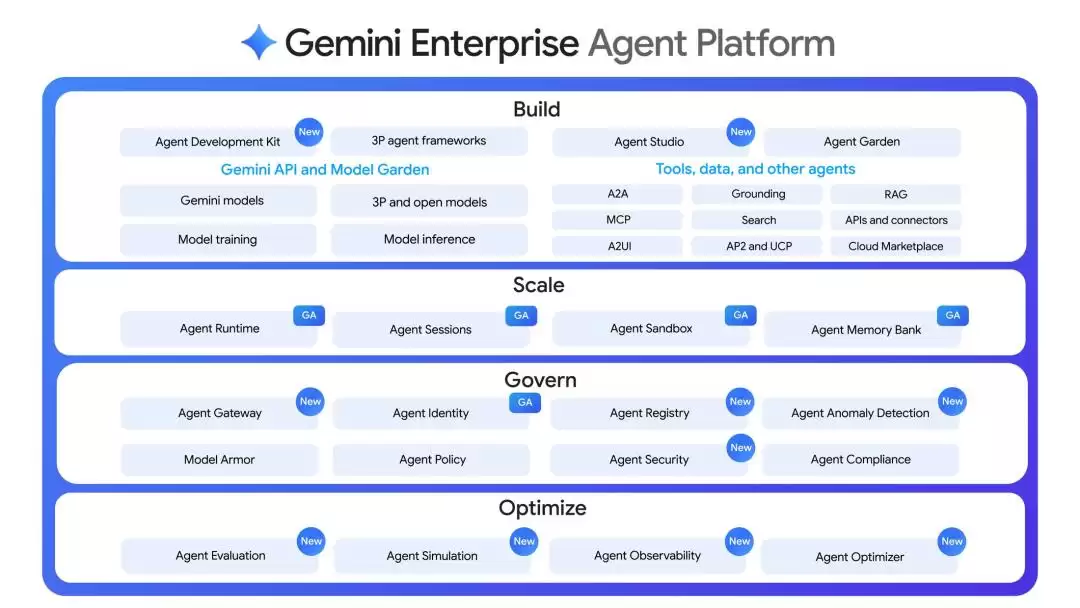 会上,谷歌宣布了“Gemini企业级Agent平台”,这是一个供企业管理成千上万个智能体的“任务控制中心”。它代表了Vertex AI的一次重大进化,提供了一套完整的智能体构建、扩展、治理与优化方案。