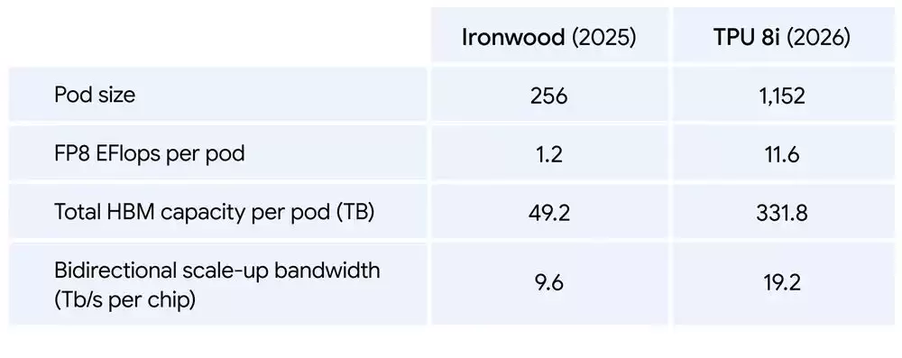 另一款TPU 8i,则是为处理多个专业智能体之间复杂、协作且迭代的工作流而量身定制。它能在单个Pod中连接1152个TPU,从而实现巨大的吞吐量与极低的延迟。