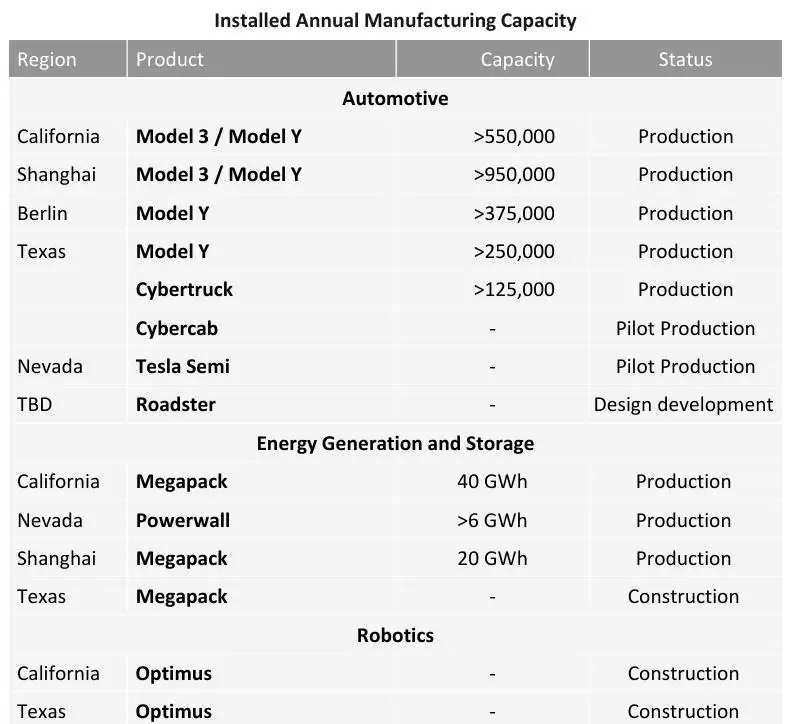 在产能布局上,特斯拉的策略是“先优化,再扩张”。公司明确表示,在建设新工厂前,将优先充分利用现有产能。目前,上海超级工厂以超过95万辆的年产能位居全球之首。