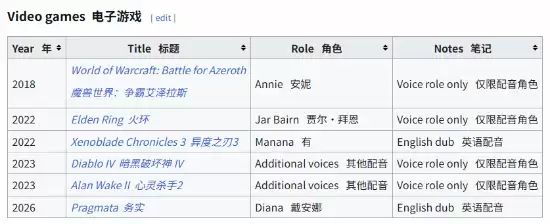 当然,她的才华并不仅限于影视领域。事实上,在参与《识质存在》之前,Grace Saif早已是游戏配音界的一位“熟面孔”了。她的声音出现在多部知名游戏作品中,积累了丰富的配音经验。