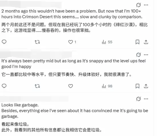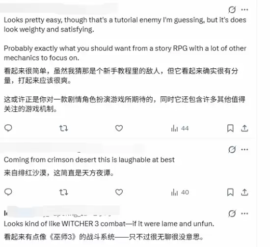 视频一出,社区里的反馈可就不那么乐观了。不少玩家直言,展示出来的战斗场面显得有些“绵软无力”,无论是动作速度还是打击反馈,都缺乏那种拳拳到肉的爽快感。有评论甚至将其与《巫师3》早期的战斗手感相提并论,并认为其观感远逊于另一款备受期待的开放世界大作《红色沙漠》。