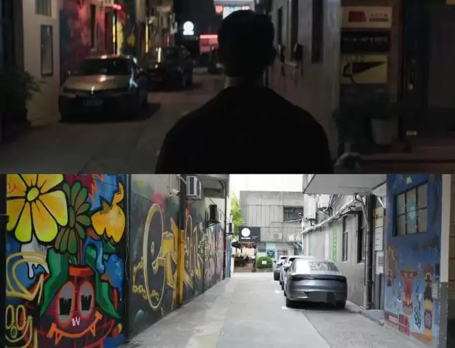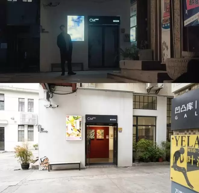 仔细看,男主发现女主时,背景里那面标志性的涂鸦墙正是M50的入口招牌。他转身的瞬间,身后其实是厘米空间画廊的门口。