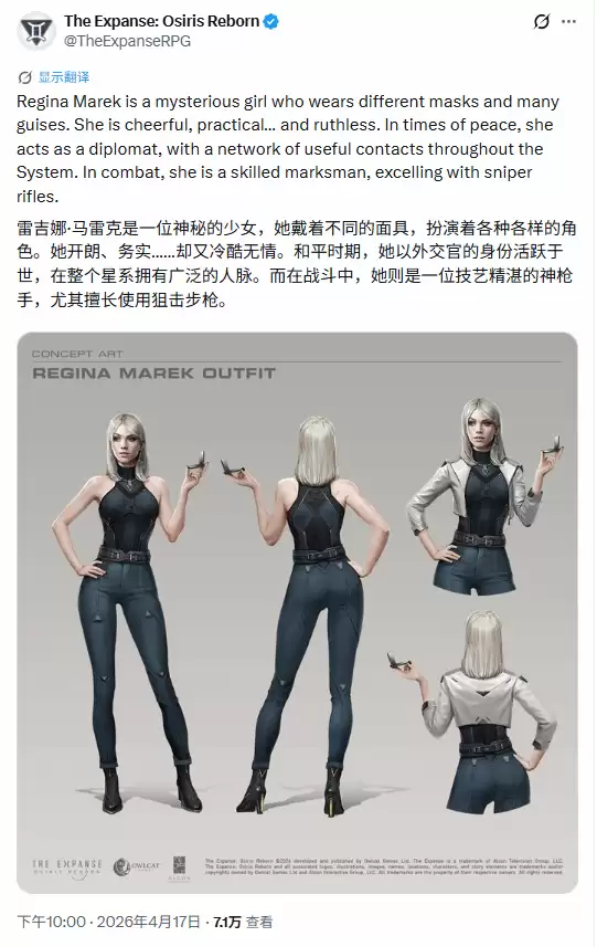 有意思的是,当时预告片释出后,社区讨论的热度很快被一位女性角色带走了。她的形象设计相当出彩,直接引发了一波玩家社区的关注热潮。这股风潮并非空xue来风,近日,官方索性放出了一系列高清图,并详细介绍了这位角色,算是给足了回应。