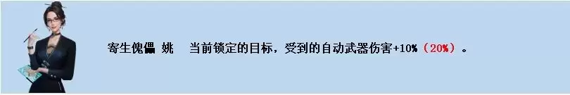 在榜单中,有一位T1级别的蓝色舰长需要特别说明。她的核心机制是为敌人附加“受到自动武器伤害增加”的负面状态——这属于游戏中极为稀缺的“易伤”效果。这意味着,她能让舰队中所有使用自动武器的舰船,对目标造成的伤害提升20%,辅助能力非常独特。