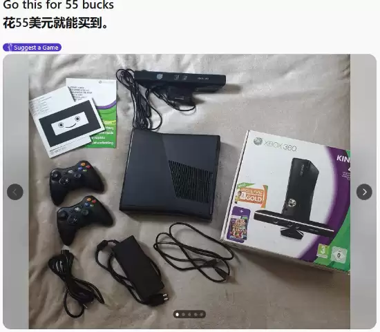 有玩家在社交平台晒出自己以55美元入手的Xbox360主机,这台主机还附带Kinect体感设备与手柄,机身外观几乎全新,摇杆细节也保存完好,玩家表示设备运行状态良好且无噪音,只是暂时还未搭配游戏使用。