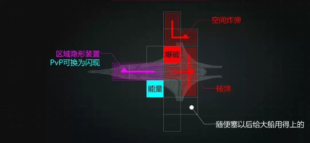 此外,区域隐形装置在PVP环境中,可以根据战术需要替换为“闪现”,让这艘小船扮演一次性的刺客角色,实现突袭斩首。