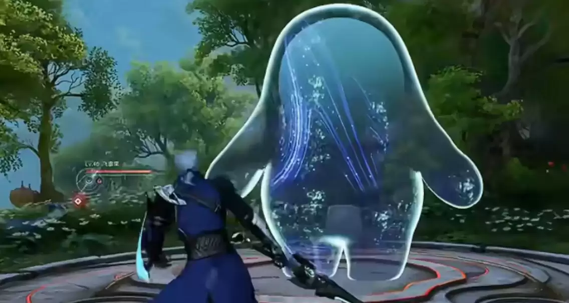 初次遇见河道巨灵,你可能会被它的外形吸引。它就像一个巨大的、半透明的果冻状能量体,散发着微光,静静漂浮在河道附近。这家伙可没有攻击性,它只会沿着预设的路线缓慢游荡,终极目标就是抵达那个发光的法阵。说白了,它的存在本身就是一个“福利快递员”,玩家要做的,就是“护送”它准时送达。