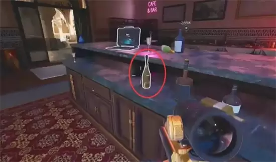 直接去酒店餐厅的柜台,你会看到一台电脑。重点就在电脑旁边——那瓶【奥莉薇娅香槟】就是目标。