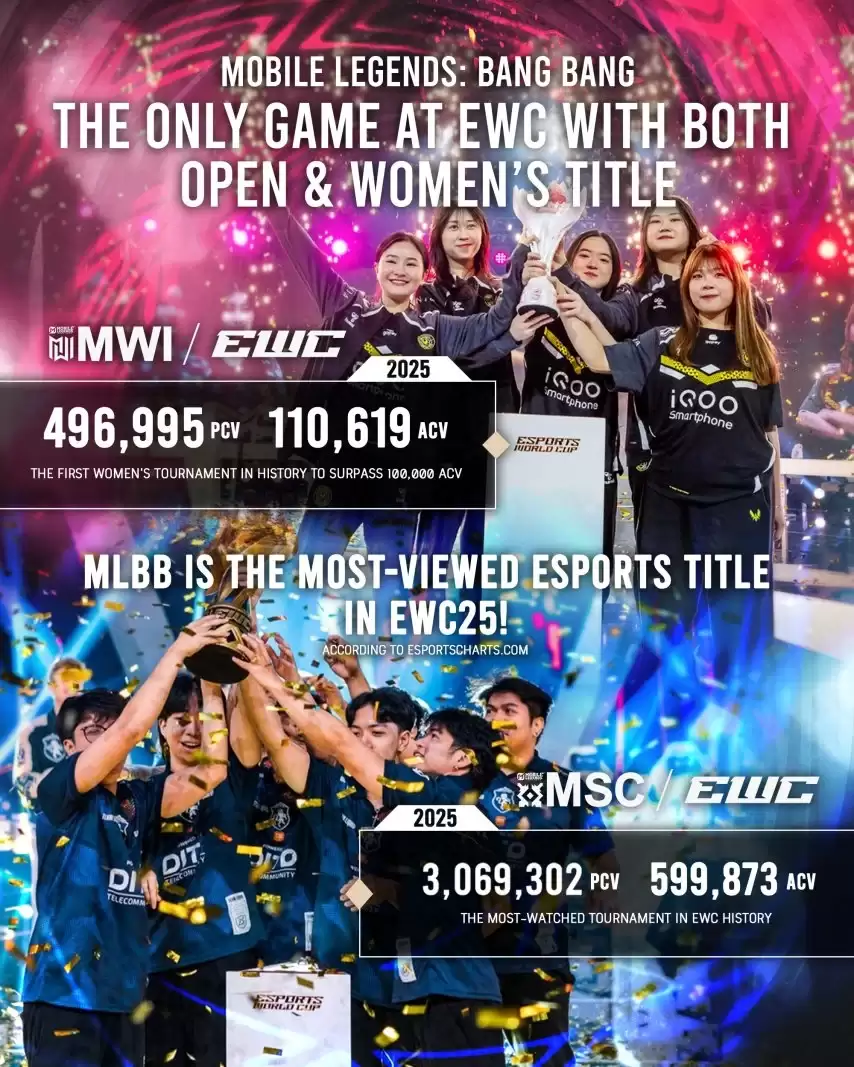 对此,沐瞳电竞赛事生态负责人Ray Ng给出了专业的解读:“MLBB女子邀请赛升级为MLBB国际女子邀请赛,是赛事生态水到渠成的成果。这项赛事从最初的邀请赛起步,自2024年起便通过各赛区预选赛选拔女子战队晋级,完成了从区域性赛事到全球性赛事的蜕变,此次品牌升级正是其影响力不断扩大的体现。”他进一步用数据佐证,“目前,全球历史上观看量排名前五的女子电竞赛事中,有4项均为《决胜巅峰》相关赛事,这足以证明我们赛事社区的强大凝聚力。我们的目标是为全球电竞生态树立一个发展标杆,将MWI与MSC置于同等重要的位置,打造统一的竞技平台。让所有选手,无论背景如何,都能在同一片赛场上,凭借实力获得认可。”