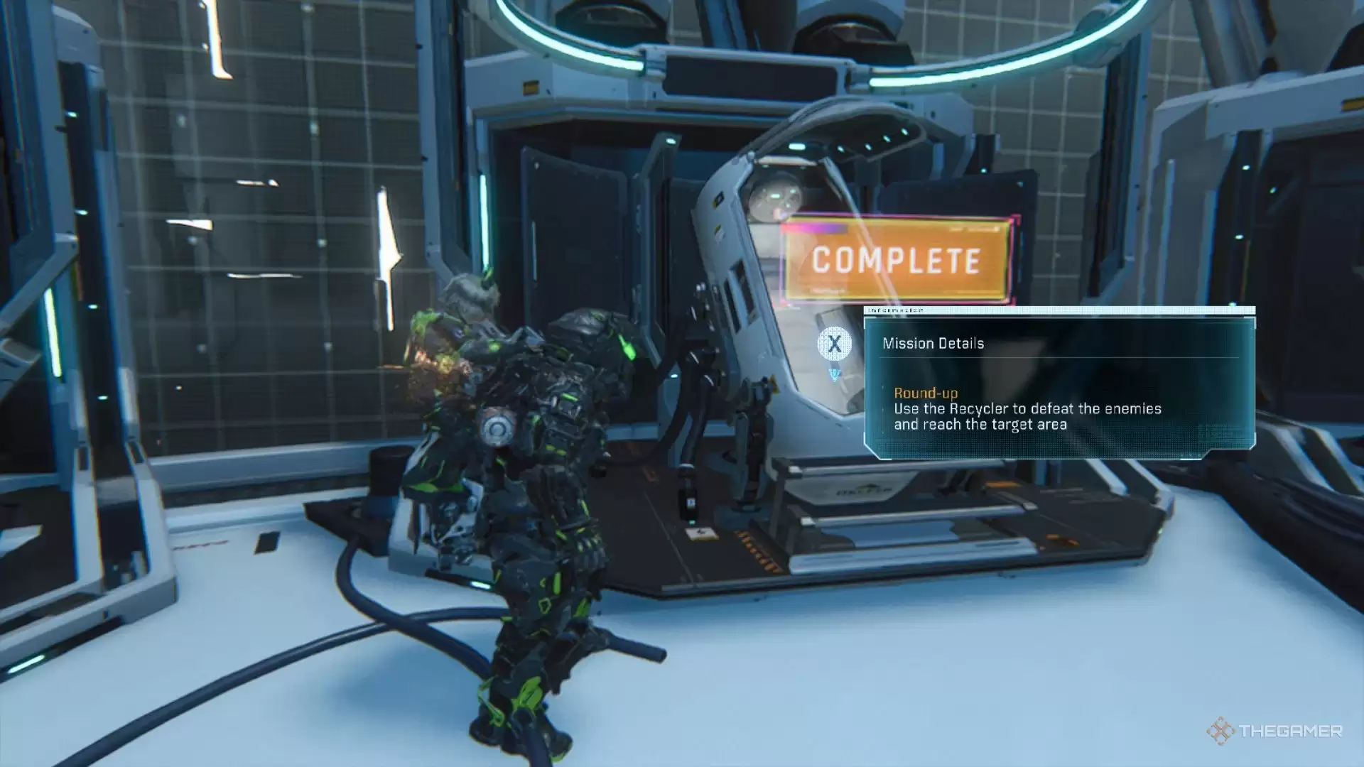 挑战场景由多个布满回收装置(Recyclers)的房间构成。虽然击败敌人的方式不限,但最高效的策略,无疑是尽可能多地将敌人引诱到回收装置的运作路径上。