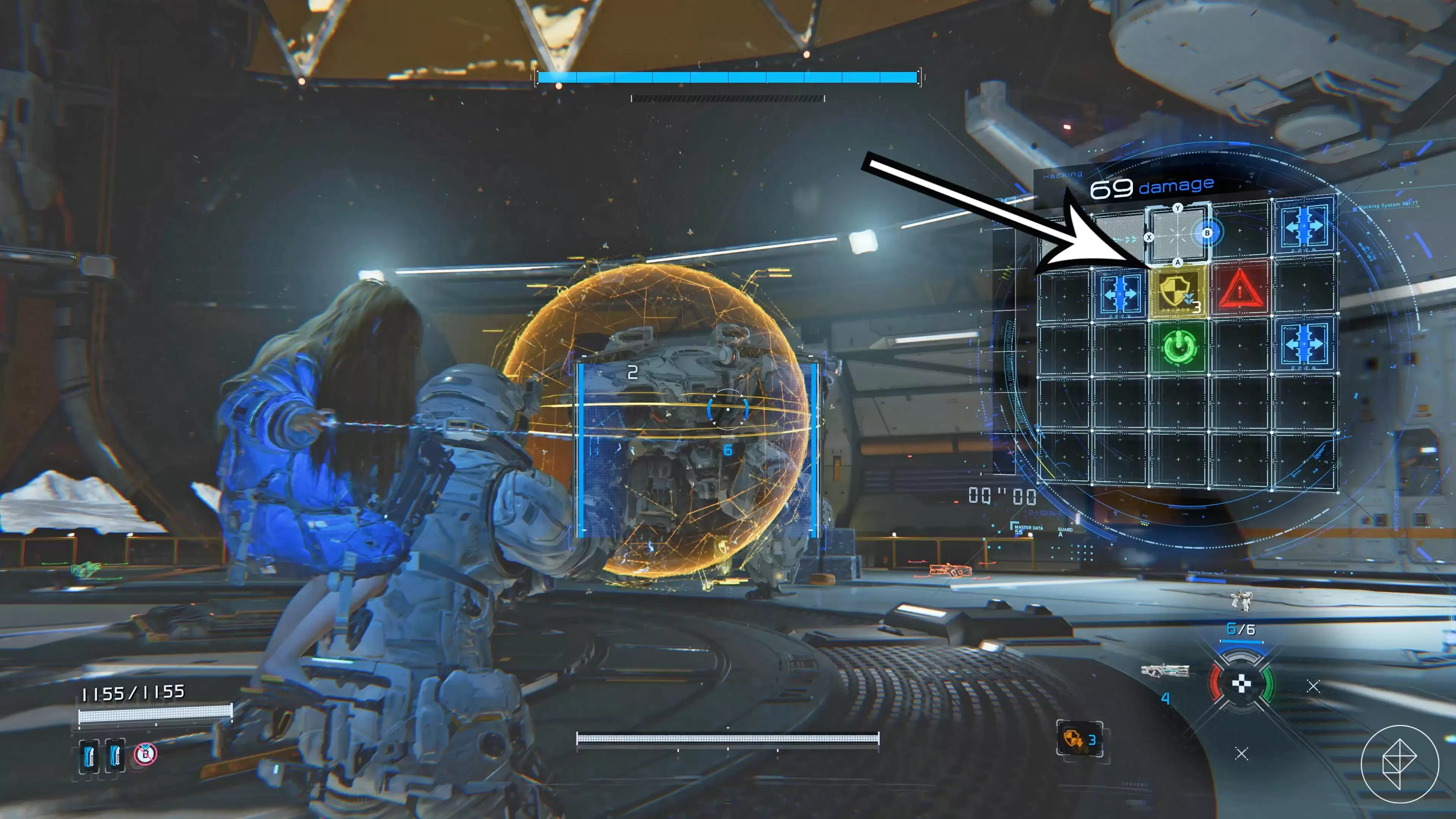 - 在固件更新器处使用升级组件。 此时你大约拥有八个组件。最优投资顺序是:优先强化主武器(提升伤害、硬直能力并降低后坐力),其次升级黑客攻击(增加伤害与持续时间)。推进器升级到位后,闪避 SectorGuard 的攻击将更加轻松,因此套装升级的优先级可稍后考虑。优化你的“黑客-射击”循环能最大化输出效率。