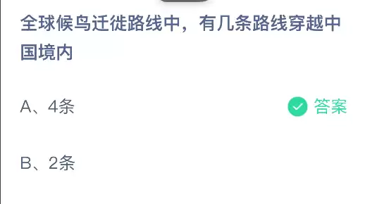 全球候鸟迁徙路线中,有几条路线穿越中国境内?支付宝小鸡课堂今日答案揭晓