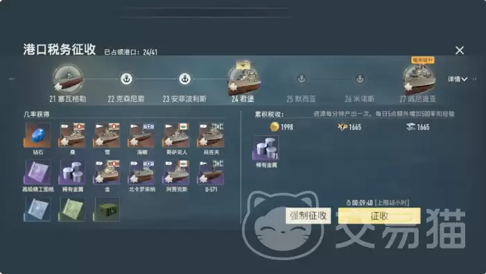 另外,千万别小看你已经占领的港口。它们不仅是后勤补给的中枢,更是舰队部署的战略支点。每新增一处可控港口,就意味着你同步解锁了一条跨境资源输送通道。这直接带来的好处是,钻石、金币、稀有金属乃至舰船碎片的小时产量,都会得到大幅提升。