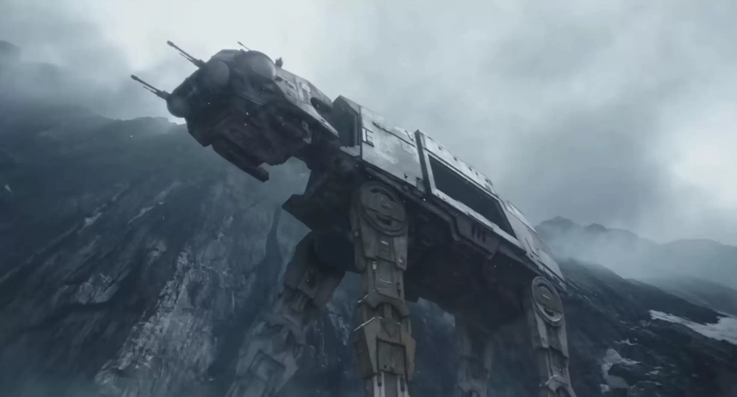 曼达洛人迅速劫持了一台双足AT-ST步行机,格罗古灵巧地跳入驾驶舱。镜头随之向下摇动,露出了山下数台庞大的AT-AT步行机。这一幕的观感非常接近电子游戏——不仅仅是因为这些场景很可能基于虚幻引擎制作,更在于费儒的镜头语言:刻意将画面焦点对准前方的敌人阵列和英雄必须突破的路径。整个场景,就差一个旋转的自动保存图标来确认这“游戏感”了。