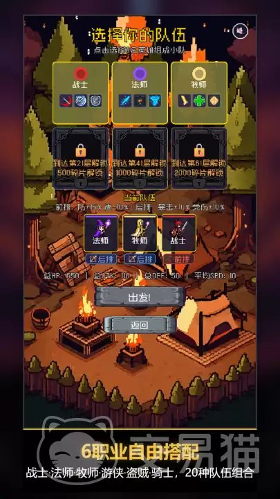 游戏提供了六种基础职业,职业间存在技能联动和属性克制的关系。你可以完全根据战术偏好来自由搭配,比如走极致暴击的输出路线,或者构建以持续恢复为核心的续航体系,又或是追求控制链压制。战斗过程中可以手动调整出手顺序,系统自动生成的战斗日志则方便你事后复盘,优化每一个决策节点。每通关一层,还能解锁一项临时增益效果。这里有个小建议:最好根据你已确定的流派方向进行定向强化。比如,玩暴击流就优先提升暴击率和暴击伤害,玩恢复流则侧重治疗量和续航能力的加成。