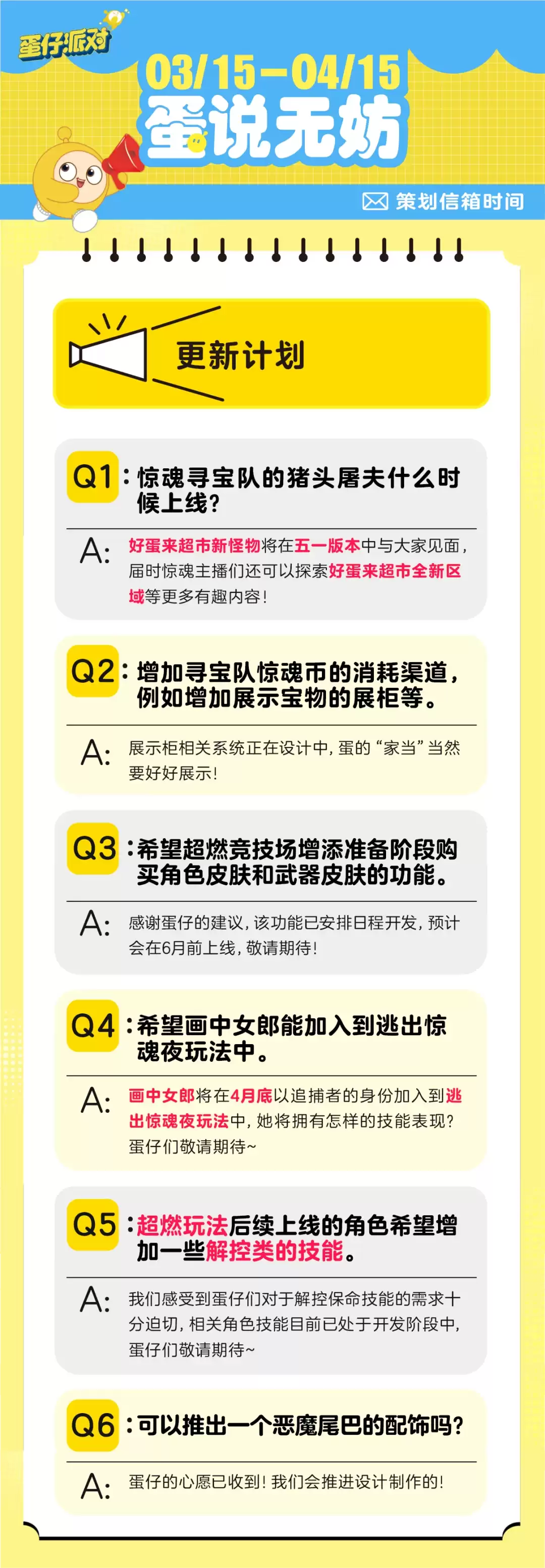 最后划个重点:别忘了,下个月的15号,信使皮蛋还会带着新的策划回信准时到来。有什么新的想法、期待,都可以持续关注和提出。这场蛋仔与策划之间的对话,将会一直继续下去。