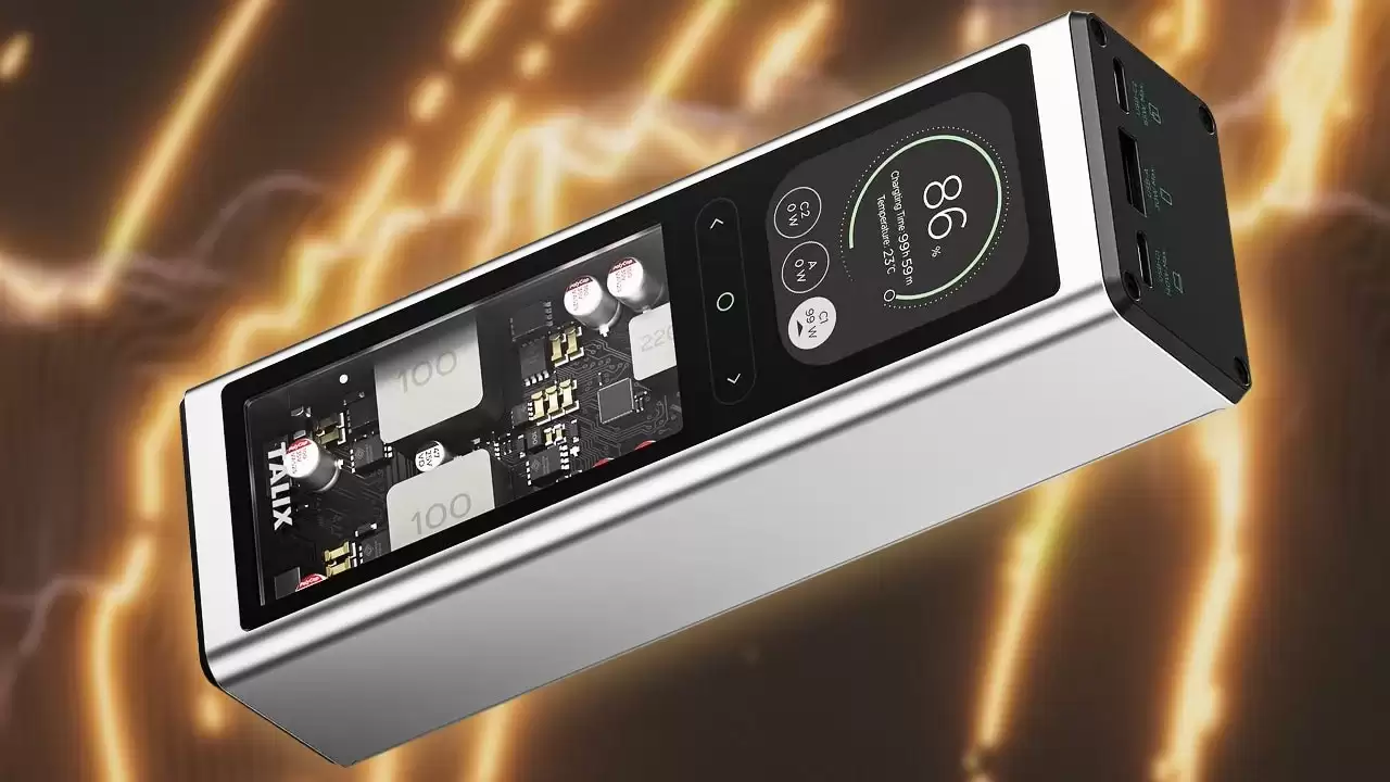 对“Talix”这个品牌感到陌生?这很正常。Talix实际上是一家获得联想支持的公司,而这款移动电源,除了品牌标识不同,本质上与联想Thinkplus Fluxo移动电源是同一款产品。它采用了经典的“糖果条”造型,并设计了一个相当酷炫的透明视窗,可以直接看到内部的精密电路。接口配置上,它提供了三个输出口:一个140W的USB-C口、一个65W的USB-C口以及一个30W的USB-A口。