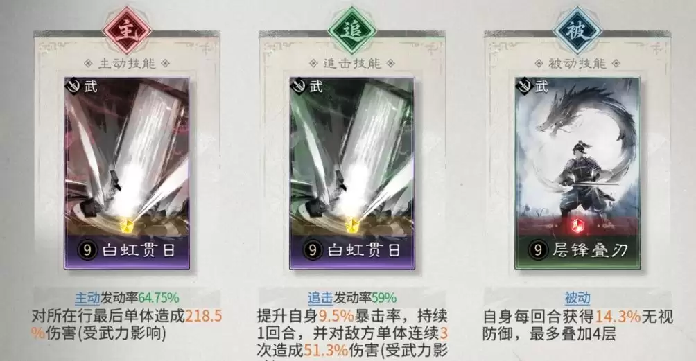 被动技能方面,【层锋叠刃】是长线作战的神器。它能在回合推进中持续叠加破甲效果,特别适合名将这种需要持久输出的战斗场景,时间越久,伤害越恐怖。