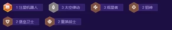这套阵容能激活的羁绊相当扎实:1个【汪星机器人】、3【太空律动】、3【观星者】、2【狙神】、2【堡垒卫士】以及2【重装战士】。这些羁绊共同提供了控制、攻速、伤害加成以及最关键的前排硬度。