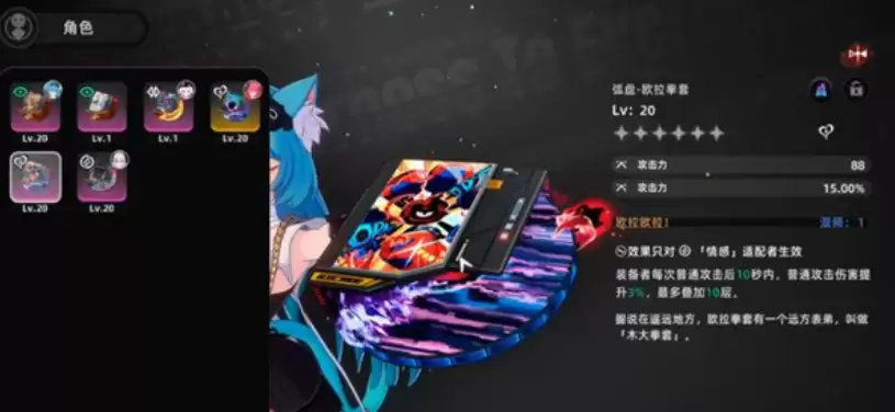 搞清楚了怎么拿,我们再来看看欧拉拳套本身到底怎么样。目前,这件武器是紫色品质,在游戏武器梯队中属于中等偏上。要知道,游戏内最高品质为金色,未来据称还会开放橙色高阶武器,因此欧拉拳套虽非顶级,但在前期绝对是够用的主力选择。它有一个明确的佩戴限制:仅对「情感」类适配者生效,其他类型的角色装备了也无法触发效果。其核心效果在于,每次普通攻击能提升3%的伤害,并且这个效果可以叠加,最高10层。算下来,满层状态下普攻增伤幅度相当可观,非常适合依赖普攻进行输出的角色佩戴。当然,如果你觉得欧拉拳套的威力还不够,可以留意更高阶的“木大拳套”,那件的效果会更上一层楼。