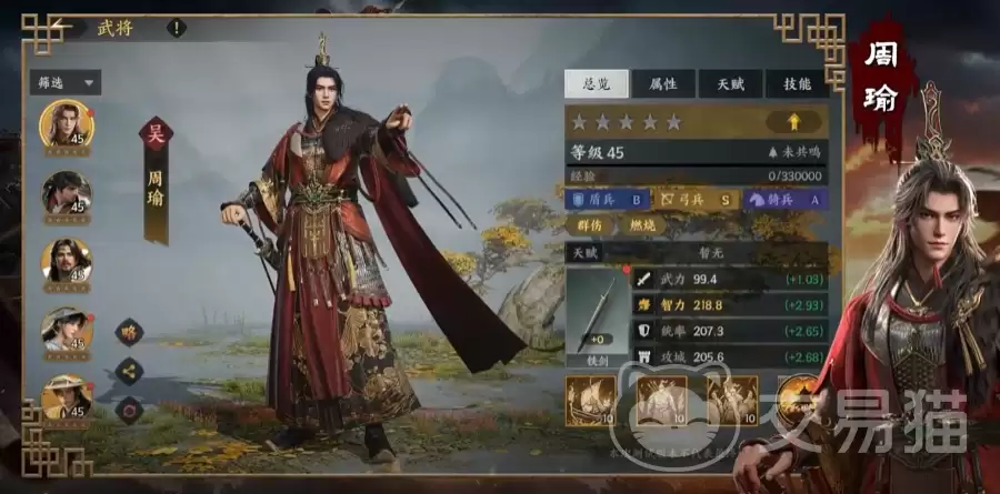 要最大化周瑜的威力,推荐采用纯吴国阵营,构筑“孙权+周瑜+小乔”的铁三角组合。这套阵容能激活强力的吴国专属羁绊,带来可观的整体协同增益。三位武将均应采用全智力加点,以确保技能收益最大化。