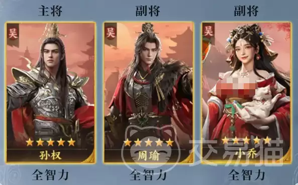 其中,孙权作为主将,其核心战术价值在于施加“易伤”减益状态。该状态能显著提升我方智力最高单位的技能伤害。这里存在一个关键细节:周瑜的智力数值必须严格高于孙权和小乔。唯有如此,他才能稳定成为“易伤”增益的首要受益人,从而彻底引爆其输出潜力。