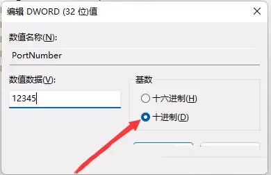 同样地,在这个路径下,你也会找到一个名为【PortNumber】的键值。没错,把它也修改成刚才设定的新端口号,比如12345。