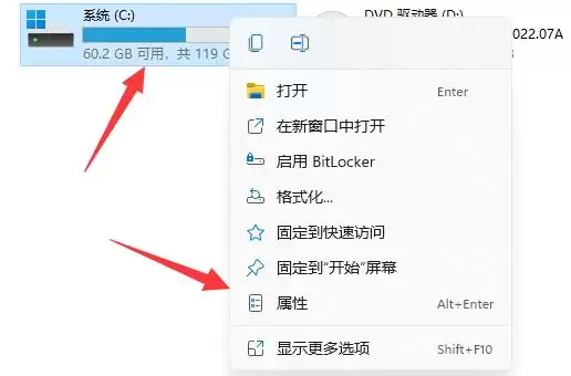 2、接着,找到你的系统盘(通常是C盘),右键点击它,在弹出的菜单中选择“属性”。