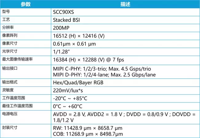 目前,SCC90XS已经开放客户送样。根据规划,这颗备受瞩目的传感器预计将在2026年第三季度正式投入量产。届时,它有望为高端手机影像树立新的标杆。以下是该产品的详细参数一览: