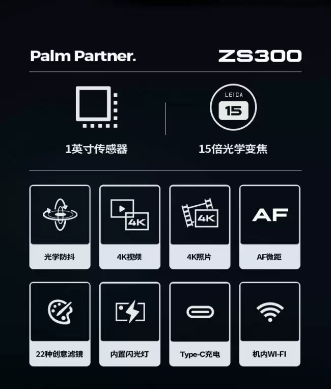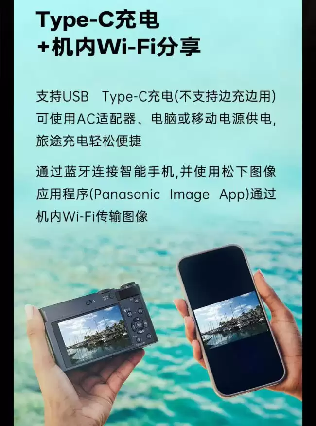 外观和连接性方面,ZS300提供了黑色与银色两种经典配色供用户选择。机身内置了闪光灯,并预装了多达22种创意滤镜,为直出照片增添更多趣味。在如今这个时代,便捷的充电和数据传输至关重要,它支持Type-C接口充电,可以通过蓝牙与智能手机快速连接,并利用机内Wi-Fi功能传输图像,整个过程相当流畅。
