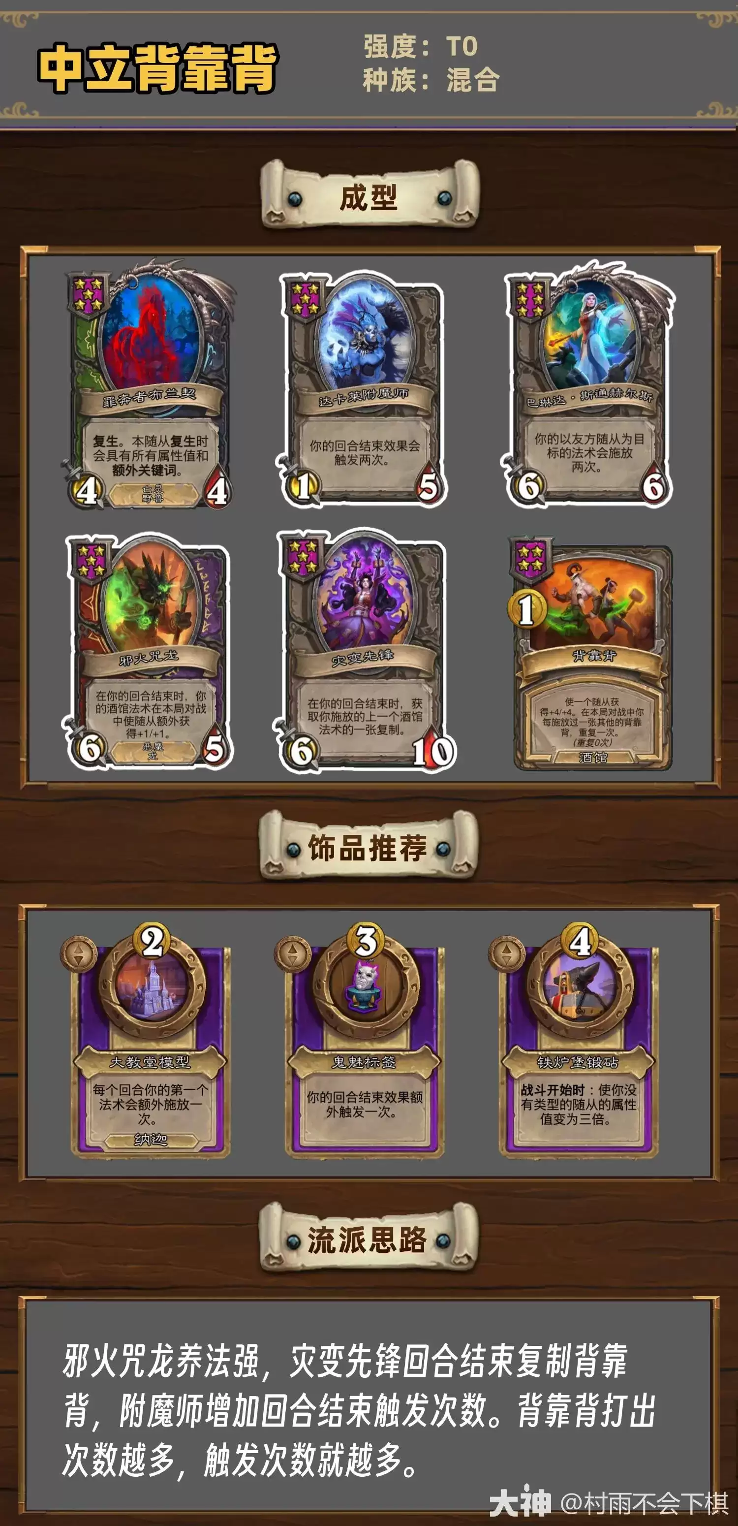 新赛季的号角已经吹响,天梯环境再次迎来洗牌。如果说有什么套路能快速适应版本初期的混沌,同时兼顾稳定上分和操作乐趣,那么“中立背靠背”体系绝对值得你优先考虑。这套阵容的核心思路并不复杂:利用那些能相互支援、产生“1+1>2”化学反应的中立随从,构建一套扎实的中期场面,从而牢牢掌握对局的主动权。