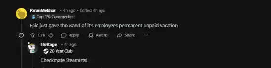 有趣的是,每当有公司展示出超规格的员工福利时,同行总难免被拉出来对比一番。这次也不例外。评论区里,就有人顺势调侃了近期进行大规模裁员的Epic Games,戏称其“为员工提供了另一种福利:永久的无薪假期”。这种对比,虽然带着玩笑成分,却也尖锐地反映了当下科技行业两种截然不同的企业文化与处境。