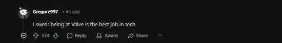 消息一出,瞬间点燃了玩家和从业者的讨论。社交媒体上,不少人直接将公司联合创始人加布·纽维尔捧上神坛,称其为“GOAT”(史上最佳)。更有网友感慨,能在Valve工作,恐怕是科技游戏行业里最令人向往的职位之一了。