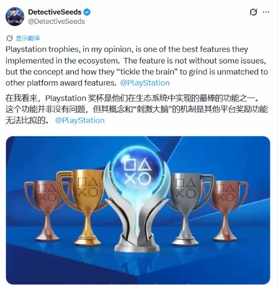知名爆料人Detective Seeds近期发文表示,PlayStation平台最成功的功能之一就是奖杯系统,这一观点随即收获了大量玩家的支持。