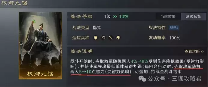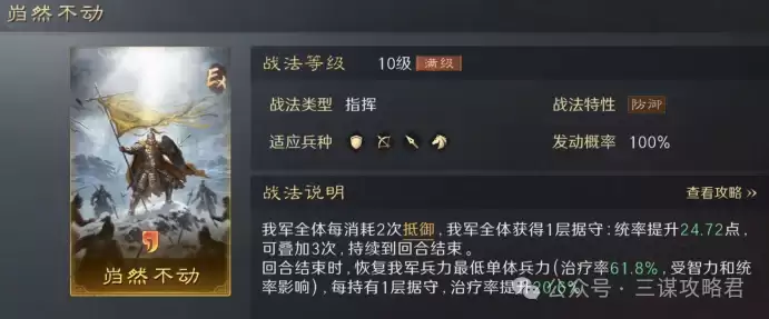 1. 共存性极佳:由于不占用折冲御侮、践墨随敌这类T0级别的防御战法,因此非常方便进行多队阵容搭配,共存压力小。