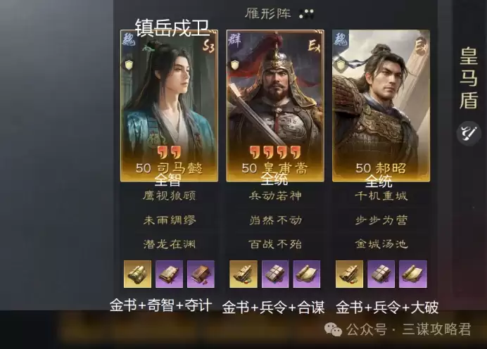 司马懿全智力加点,韬略金书选择【奇智】与【夺计】,幕僚选用【镇岳戍卫】。