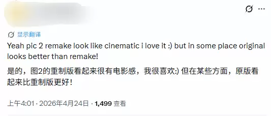 然而,争议之下总有反驳。很快就有资深游戏博主站出来,用一组对比图直接回应了“原地踏步”的说法。他的观点很明确:别急着下结论,先看看重制版在某些场景下的提升有多“疯狂”。他选取的同一景观对比,差异确实堪称显著。