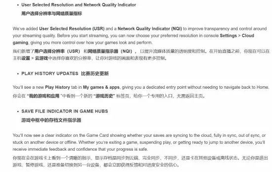 针对云游戏体验,本次更新显著增强了透明度与控制力。新增了手动分辨率选择功能,玩家可根据自身网络带宽与显示设备,主动调整云游戏流媒体质量,在画质与流畅度间取得平衡。同时,界面新增了实时网络质量指示器,清晰显示当前连接状态,帮助玩家预判可能出现的延迟或卡顿。这两项更新双管齐下,让Xbox Cloud Gaming体验更可控、更安心。