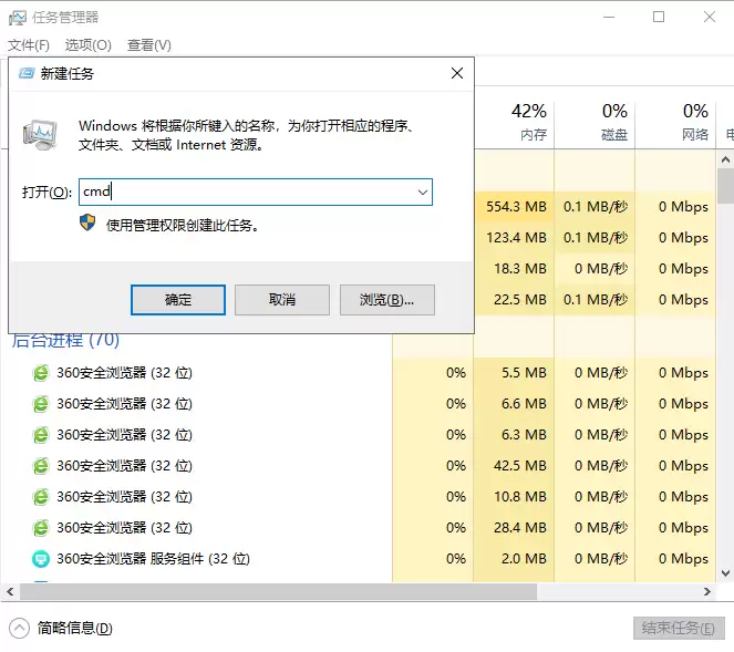 第二步:创建新任务,打开命令提示符。在任务管理器窗口的左上角,点击“文件”菜单,然后选择“运行新任务”。在弹出的对话框里,直接输入“cmd”,然后敲回车键。这个过程可以参考下面的图示: