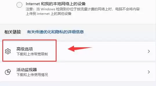 第五步,在“传递优化”页面,找到并打开“高级选项”。