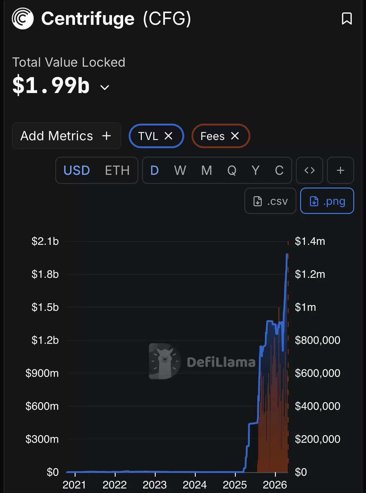 另一强劲对手是DeFi原生基础设施Centrifuge,它同样专注于机构级RWA基础设施,包括基金代币化。它通过特殊目的载体实现合规,并擅长将资产池与Aa ve、MakerDAO等DeFi协议集成以获取流动性。目前已成功代币化Janus Henderson Treasury基金、CLO基金等,与KAIO的业务实用性高度重合。据DeFiLlama数据,Centrifuge目前总锁仓价值约19.9亿美元,其代币CFG的完全稀释估值约1.68亿美元,已上线多家主流交易所。