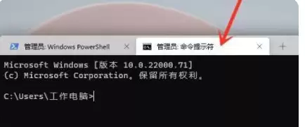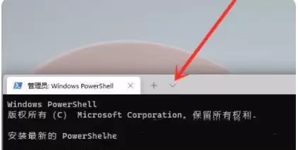 点击之后,系统会打开一个【管理员:Windows PowerShell】窗口。这里有个Win11带来的便利新功能——多标签页。你留意窗口顶部,会发现一个向下的箭头图标,点击它。