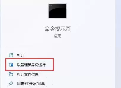 系统会立刻给出搜索结果。在右侧的搜索结果中,找到“命令提示符”应用,不要直接点击,而是点击其下方的【以管理员身份运行】选项。