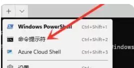 点击箭头后,会展开一个下拉菜单,在里面选择【命令提示符】。
