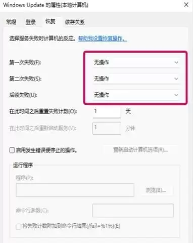 到这里,很多朋友以为就结束了。其实不然,最关键的一步在“恢复”选项卡里。点击“恢复”,你会看到系统默认在服务失败后的应对动作。我们需要将“第一次失败”、“第二次失败”和“后续失败”这三个选项,全部从默认的“重新启动服务”修改为“无操作”。这一步才是真正斩断其自动恢复链条的核心,务必设置。
