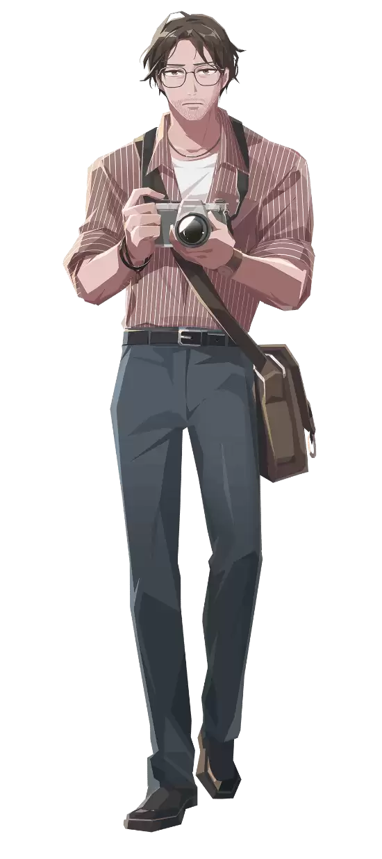 本作的主角,曾是一名新闻摄影师,也经营过咖啡馆。年届四十,离过一次婚,言谈间总带着点讽刺与冷淡。在返乡途中遭遇事故,意外坠入名为“亡土”的神秘世界。为了找到返回现实的道路,他与一位神秘少女结伴,踏上了前途未卜的旅程。